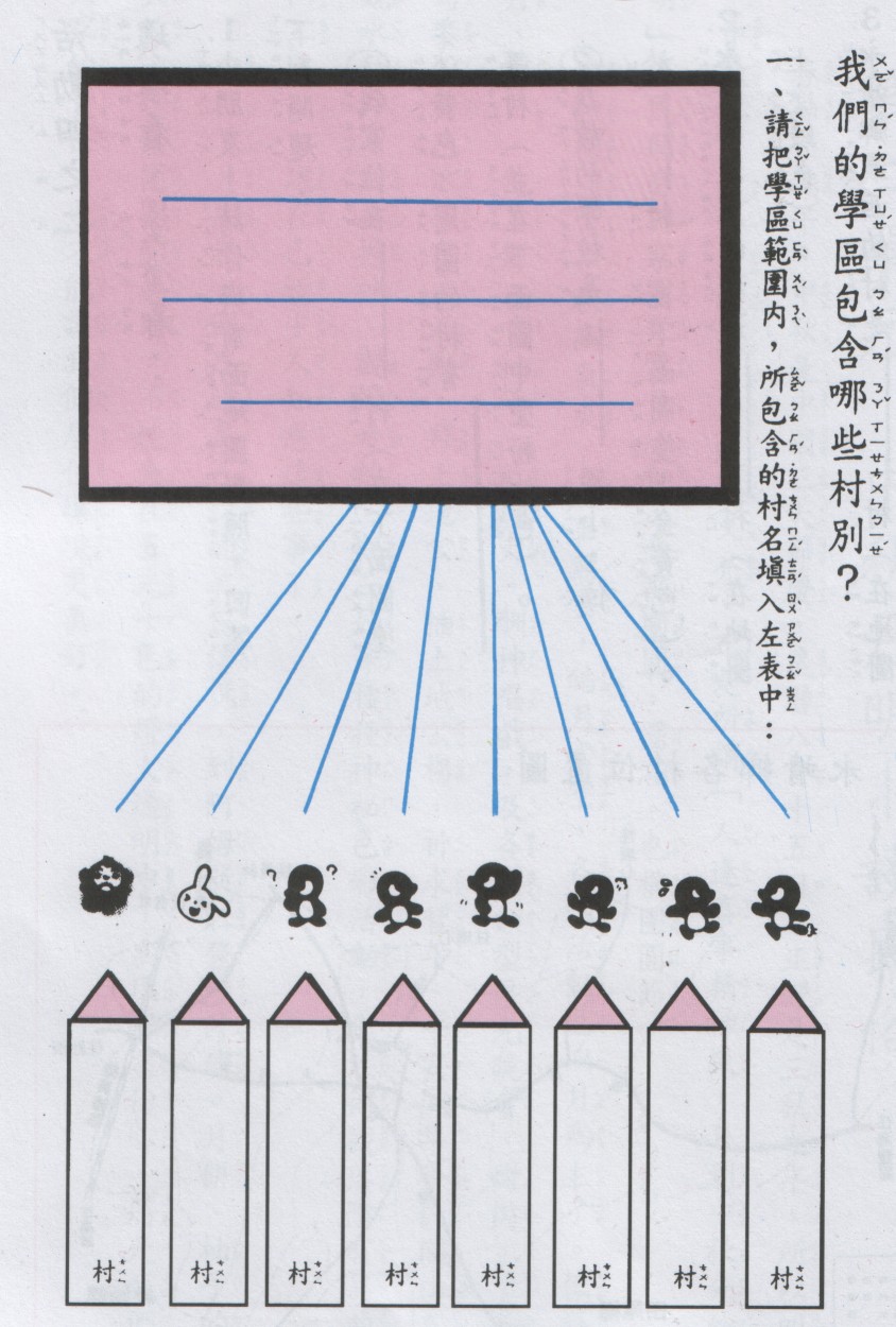 (2)我讀的學校是 國小,位於 村(在下面塗上金黃色)。