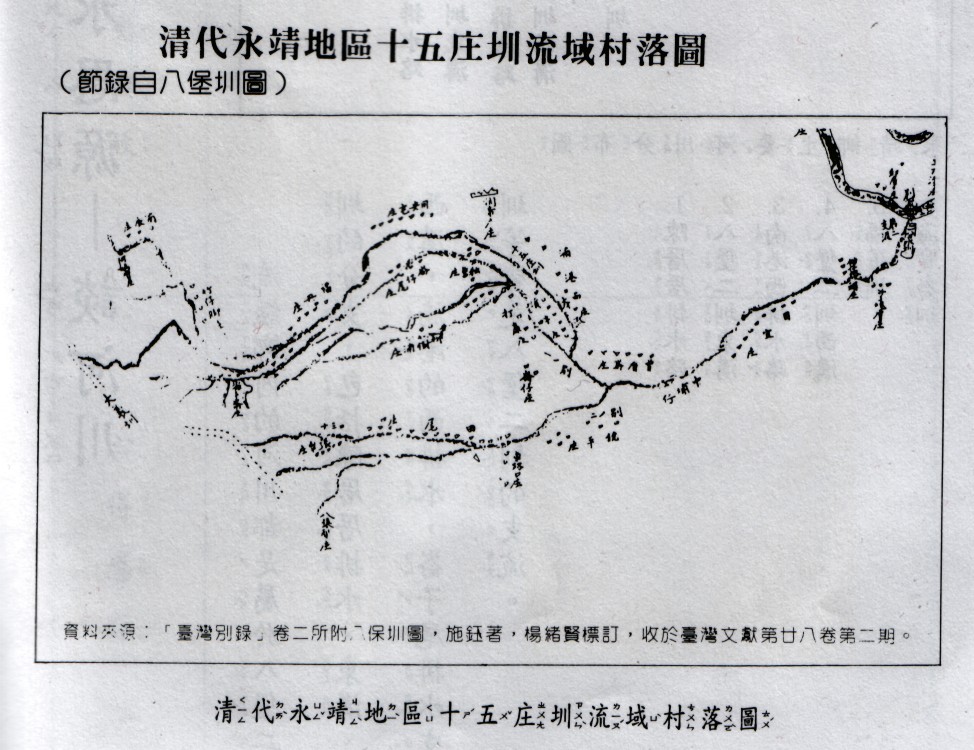 清代永靖地區十五庄圳流域村莊圖(節錄自八堡圳圖)