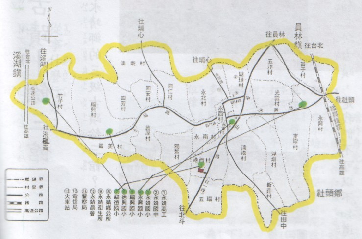 下列地圖中紅色部份是我們永靖鄉的三級古蹟餘三館。 |