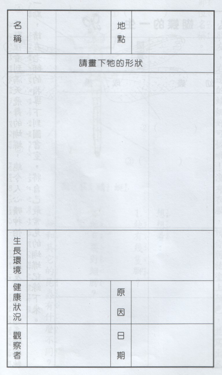 | 小朋友,請依老師所分配的組別,至校園裡找一隻喜歡的昆蟲,並作成記錄。 |