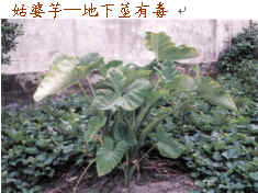安安:「真好啊!這裡有免費的大芋頭。」 老師:「小心!這是姑婆芋,